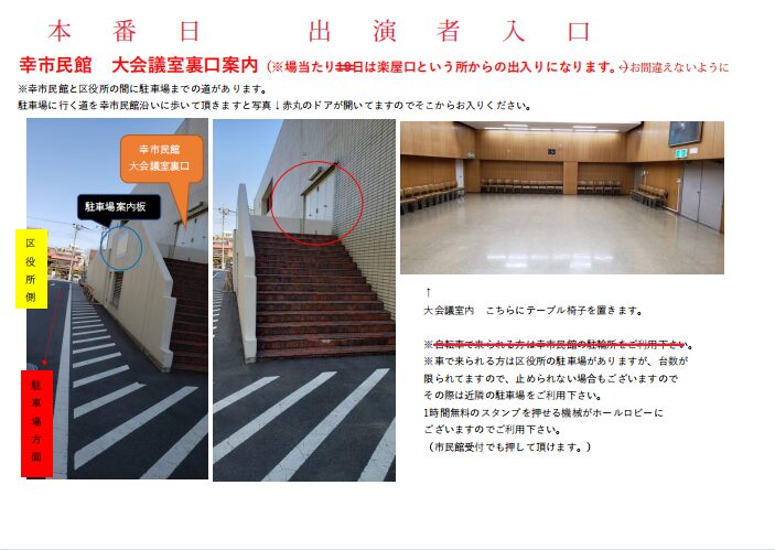 【場当たり日と本番日の入口が違いますので、お間違えない様にご確認の程、宜しくお願い致します。】