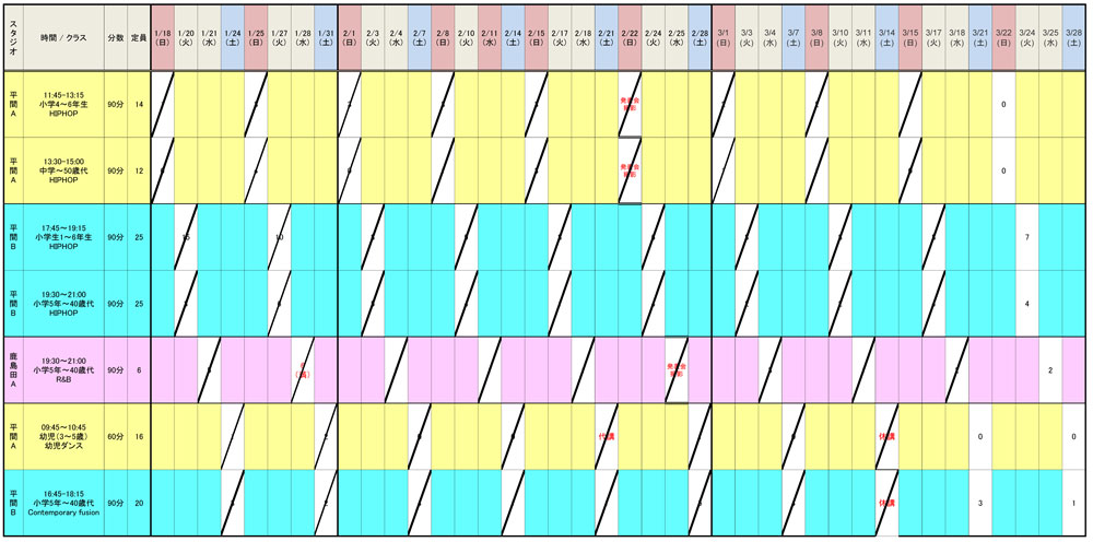 3/18までの予約状況は以下の通りです。クリックするとPDFが開き、ダウンロードも可能です。この機会に是非ともお楽しみ&スキルアップしてください!