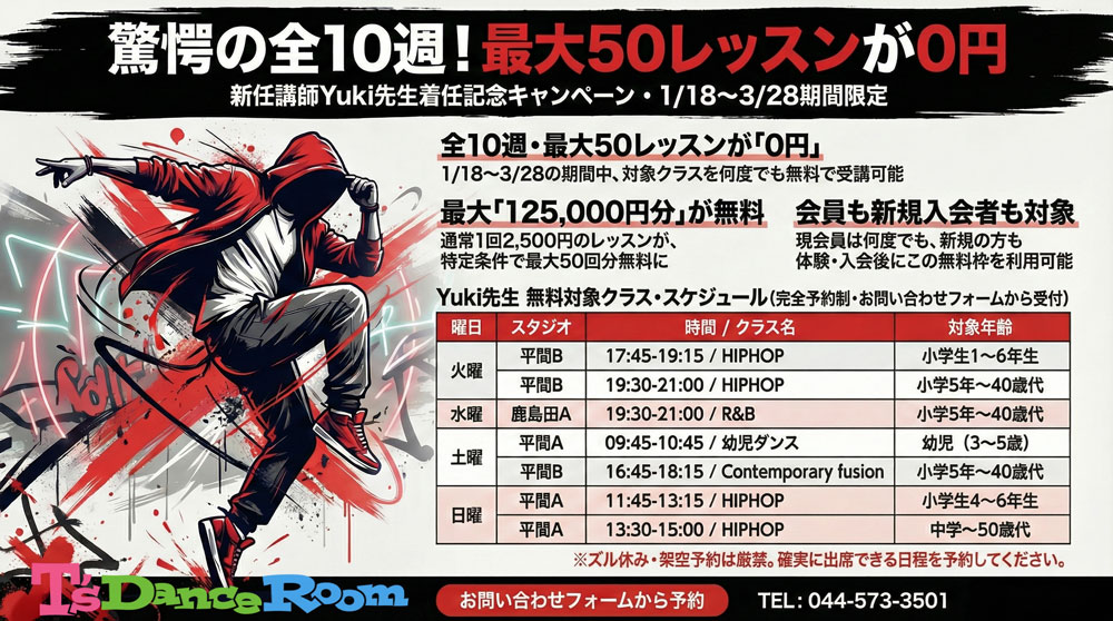 ★期間限定&事前予約制 Yuki先生クラス無料レッスン★