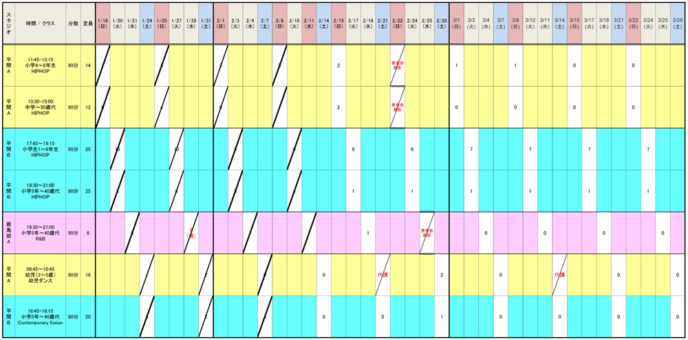2/11までの予約状況は以下の通りです。クリックするとPDFが開き、ダウンロードも可能です。この機会に是非ともお楽しみ&スキルアップしてください!