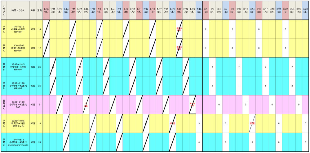 2/25までの予約状況は以下の通りです。クリックするとPDFが開き、ダウンロードも可能です。この機会に是非ともお楽しみ&スキルアップしてください!